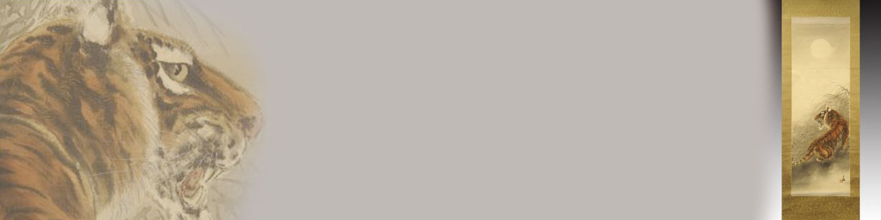 虎の掛け軸は、見ているだけで力強さや鋭く睨みつけるような眼光でしっかりとした印象の物が多く、同じ虎の画でも四肢まで描かれていて、大地を踏んでいる図柄が特に人気になっています。